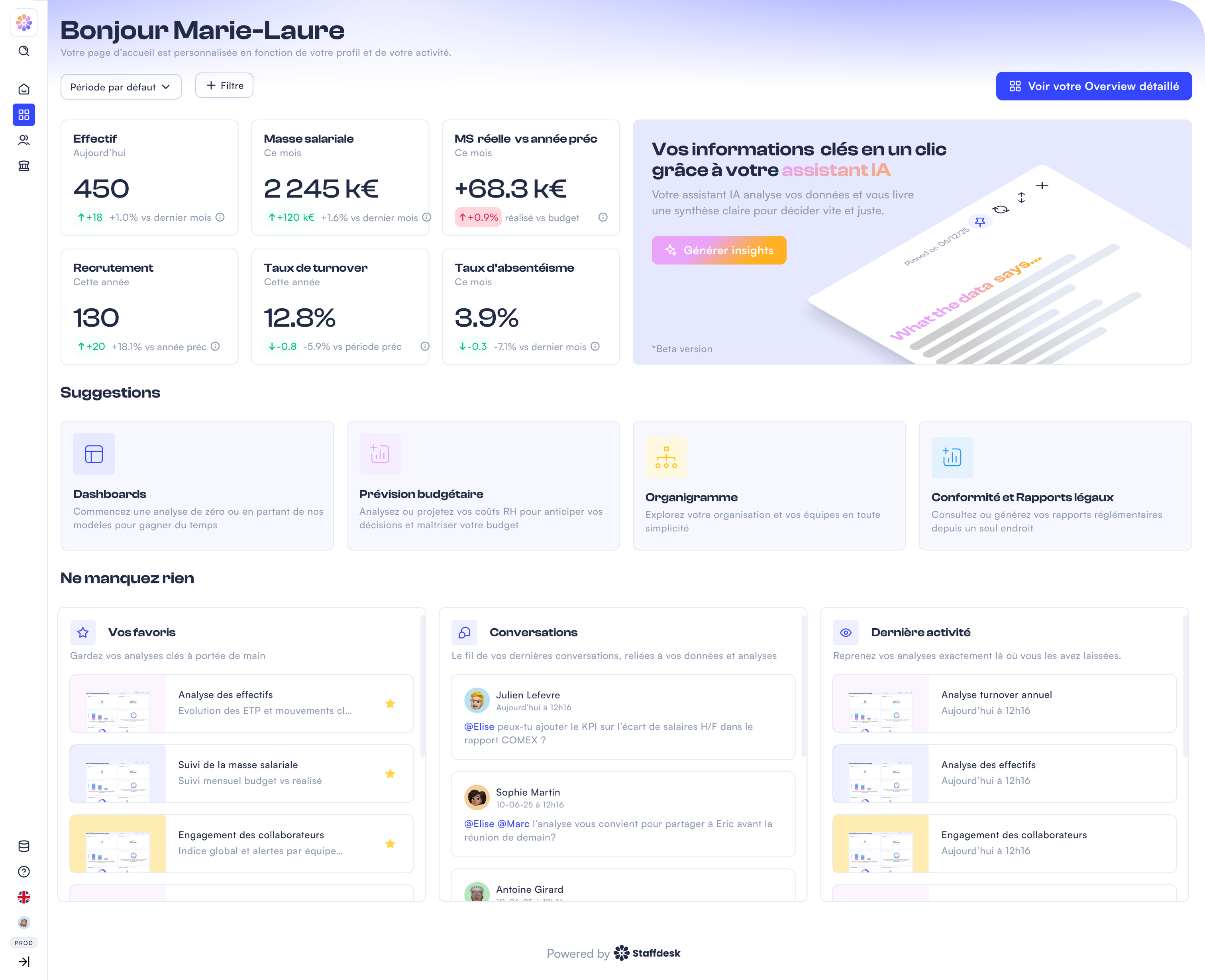 Staffdesk est la plateforme qui simplifie et fiabilise le pilotage RH et de la masse salariale.